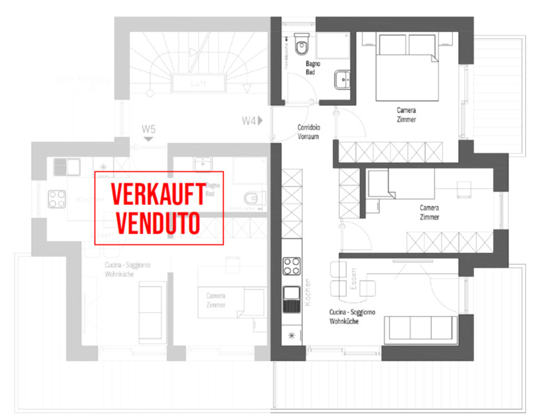 Una di queste esclusive unità residenziali è questo moderno appartamento di 4 locali al piano terra del Residence Plunger. Con un'ampia zona soggiorno e pranzo, tre camere da letto, due bagni e un invitante ingresso, questo appartamento offre tanto spazio per il comfort e la qualità della vita. Un'ampia terrazza, un giardino privato e una cantina ampliano lo spazio abitativo e creano ulteriore spazio di stoccaggio.