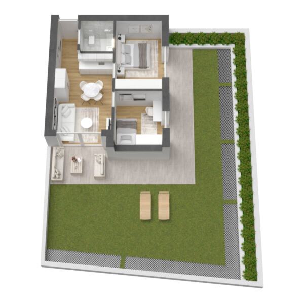 Questo appartamento convenzionato di 3 locali, situato al piano terra, si distingue per una distribuzione degli spazi funzionale e ben studiata. L’unità è composta da una cucina moderna, un accogliente soggiorno, una camera da letto e un bagno. Il giardino privato e la ampia terrazza ampliano lo spazio abitativo verso l’esterno, creando un’oasi di tranquillità con vista sul suggestivo paesaggio montano circostante. Una cantina è inclusa nell’offerta; un garage può essere acquistato separatamente con supplemento.