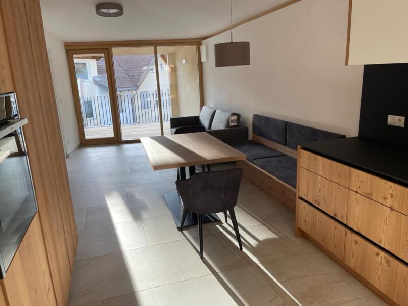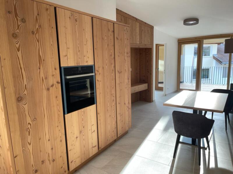 Nuovo bilocale di alta qualità, completamente arredato e molto spazioso (58 m² + 15 m² di terrazza coperta) in affitto per single o coppie residenti. Ascensore presente. Cani non ammessi. Nessun posto auto (possibilità di parcheggio con tessera residenti rilasciata dal Comune).