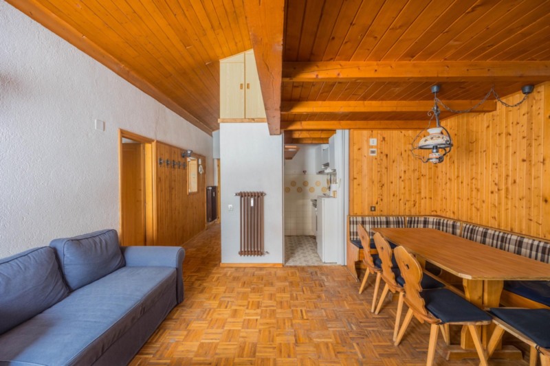 Die Wohnung selbst überzeugt durch ihren traditionellen alpinen Stil, geprägt von warmen Holzelementen, die eine behagliche Atmosphäre schaffen. Nach dem Betreten führt ein einladender Eingangsbereich in die verschiedenen Räume: ein kleines Badezimmer, eine praktische Miniküche sowie ein gemütliches Wohnzimmer, das zum Verweilen nach einem aktiven Tag in den Bergen einlädt. Das Schlafzimmer verfügt über ein eigenes Badezimmer und bietet zusätzlichen Komfort. Eine Innentreppe führt in das Dachgeschoss, das vielseitig genutzt werden kann – sei es als weiterer Schlafbereich, Rückzugsraum oder Stauraum. Eine Garage ist im Kaufpreis bereits inbegriffen und rundet das Angebot ideal ab.