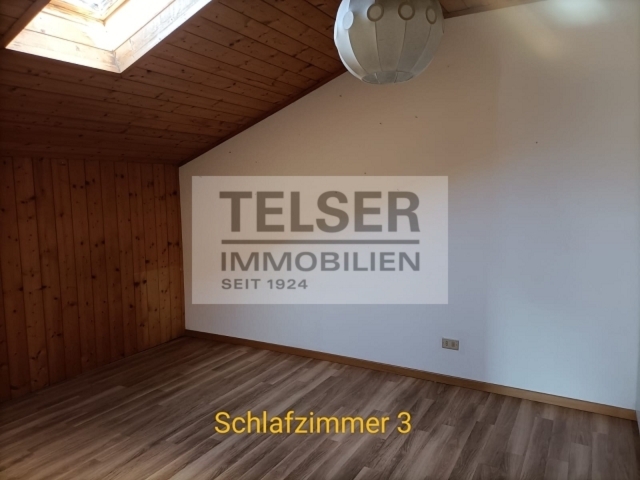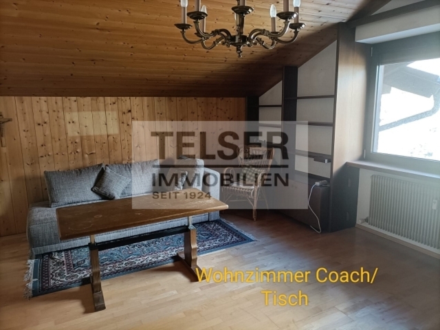 Die Wohnung befindet sich im 2. und letzten Stock eines kleinen Mehrfamilienhauses und verfügt über Wohnküche mit Abstellraum, Wohnzimmer mit Kachelofen, drei Schlafzimmern, zwei Bädern, zwei Balkonen, sowie über eine interne Wendeltreppe verbunden einem großem Dachraum von insgesamt 91 m² mit drei Abteilen.