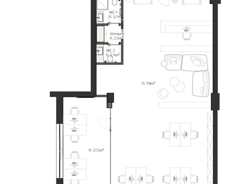 Wir vermieten ein großes Bürolokal in sehr gutem Zustand. Das Büro befindet sich im zweiten Stock des Andrian Centers.