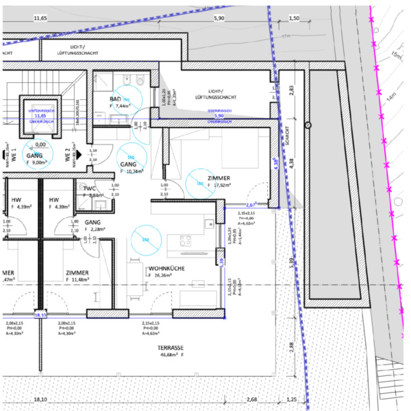 Zur Wohnung können zusätzlich ein Stellplatz in der Garage zu 28.000 € oder/und ein Autoabstellplatz im Freien zu 18.000 € erworben werden.