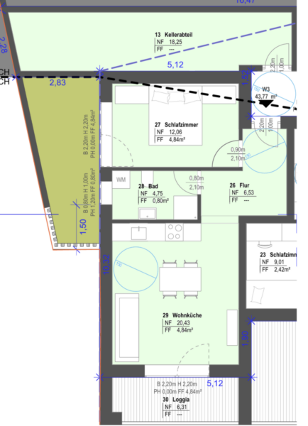 Ausserdem befindet sich direkt nebenan ein 18m² großer Keller.