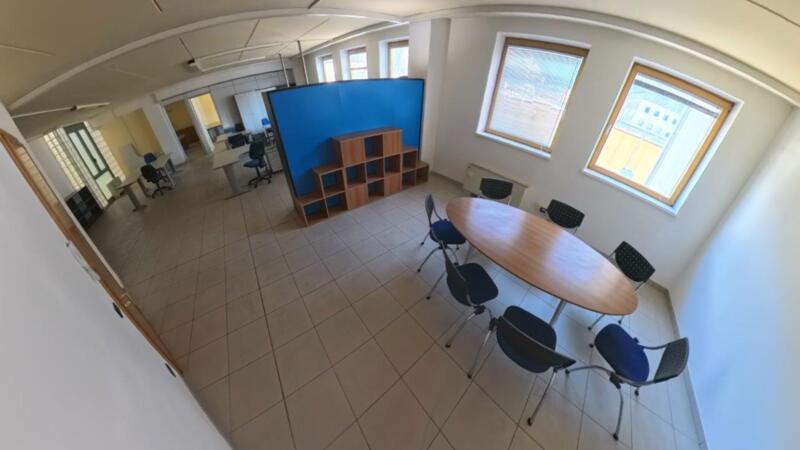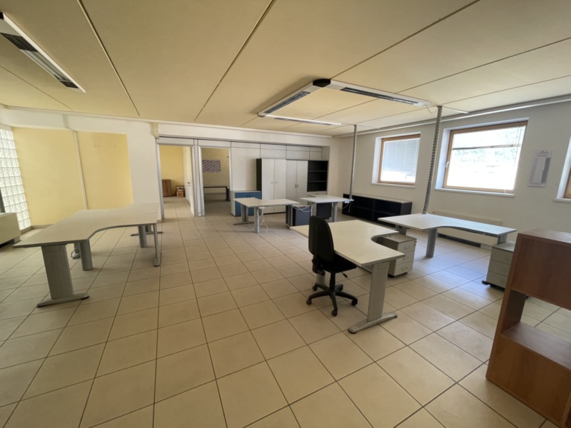 Die Innenwände bestehen aus Leichtbaukonstruktionen und können je nach Bedarf problemlos entfernt oder angepasst werden. Das Büro verfügt über zwei WCs mit Vorraum.