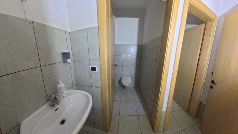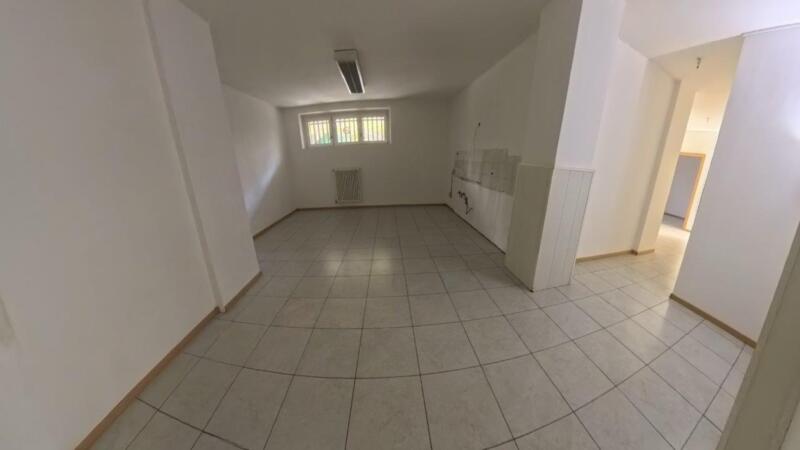Ein Drittel der Fläche kann als Wohnraum genutzt werden, da Anschlüsse für Küche, Bäder und Schlafzimmer vorhanden sind. Der hintere Bereich umfasst Archivräume und Abstellräume. Der Zugang ist frei von architektonischen Barrieren, und dank einer Zufahrtsrampe kann die Gewerbeimmobilie direkt mit dem Auto erreicht werden.