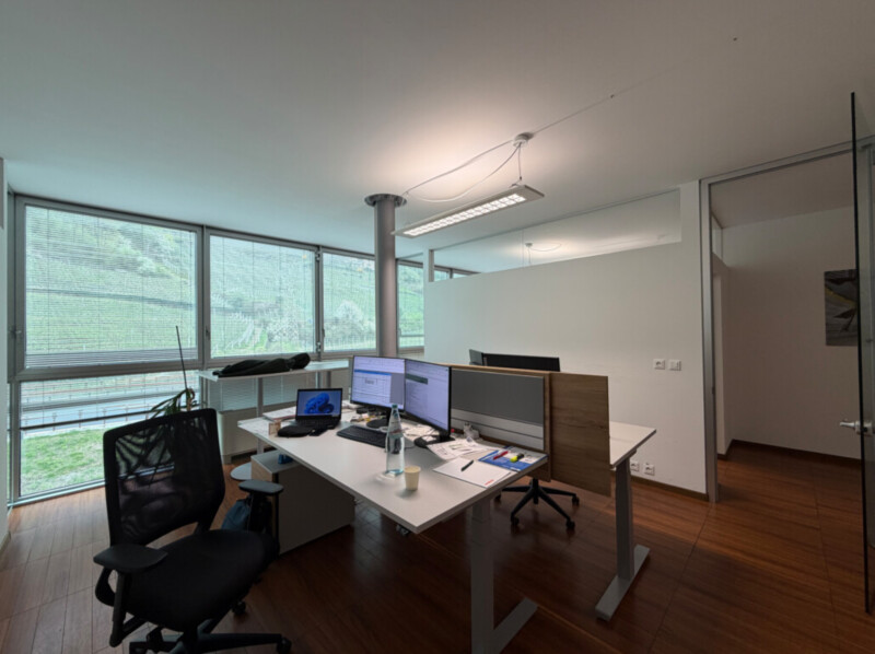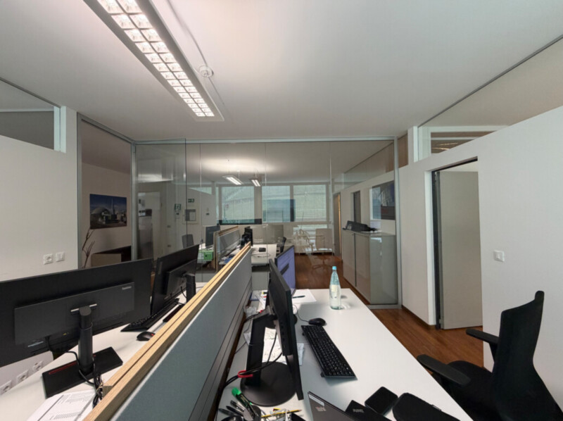 Die derzeitige Büroeinrichtung, Beleuchtung sowie die Glastrennwände gehören dem aktuellen Mieter und werden von diesem beim Auszug entfernt. Das Büro wird daher leer übergeben, sodass die Räumlichkeiten flexibel und nach eigenen Bedürfnissen gestaltet werden können.