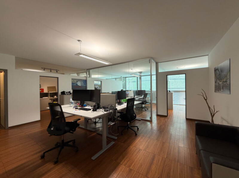Die Einheit überzeugt durch eine funktionale Raumaufteilung und bietet derzeit einen großen offenen Bürobereich sowie zwei separate Büroräume, die sich ideal als Einzelbüros oder Besprechungsräume nutzen lassen. Ein Badezimmer ist ebenfalls vorhanden.