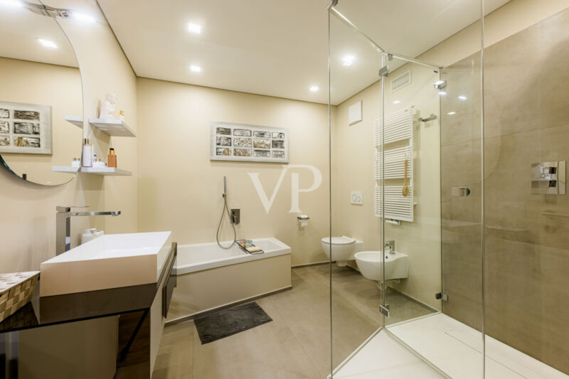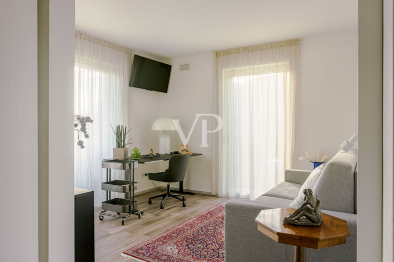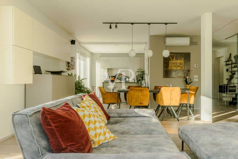 Das Haus verfügt über eine autonome Fußbodenheizung mit individueller Temperaturregelung in jedem Raum und sorgt so für ein besonders angenehmes Wohnklima in allen Bereichen. Über die Innentreppe gelangt man außerdem auf die Dachterrasse mit 360°-Panoramablick..