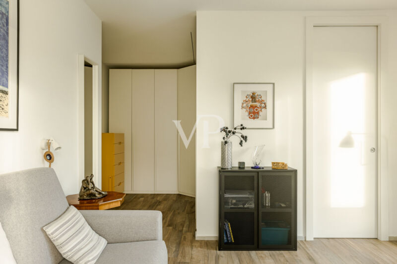 Im Obergeschoss, erreichbar über eine interne Treppe, befindet sich der Schlafbereich mit einem Doppelzimmer mit Balkon, einem Master-Schlafzimmer mit Bad en suite, einem weiteren Raum (derzeit als Waschküche genutzt) sowie einem Hauptbad.