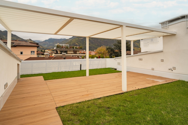 Das Penthouse ist umgeben von offenen Flächen auf drei Seiten und mit einer herrlichen Südost-Ausrichtung. Das Innere dieser außergewöhnlichen Wohnung vereint Luxus und Funktionalität, sorgfältig gestaltet, um ein unvergleichliches Wohnerlebnis zu bieten. Schon beim Betreten werden Sie in eine Welt der Eleganz und des Komforts eingehüllt. Der großzügige Wohnbereich, eine perfekte Kombination aus Wohnzimmer und Küche, lädt Sie ein, sich vom ersten Moment an wie zu Hause zu fühlen. Die beiden Hauptschlafzimmer sind wahre Ruheoasen, jedes mit eigenem Badezimmer, eines davon mit Fenster. Doch was dieses Penthouse wirklich auszeichnet, ist die atemberaubende Terrasse, die das gesamte vierte Stockwerk umgibt. Hier können Sie überdachte Bereiche für unvergessliche Momente im Freien genießen. Und wenn das vierte Stockwerk nicht ausreicht, bietet das Dachgeschoss eine Überraschung: einen Gartenbereich und eine gepflasterte Fläche mit Pergola, perfekt für entspannende Momente und um die umliegende Aussicht zu genießen.