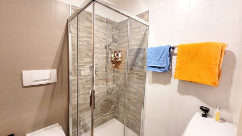 Vom Eingangsbereich gelangt man in ein großes und sonniges Wohnzimmer mit Zugang auf die große Terrasse mit Ausblick. Auch von der hellen Wohnküche gelangt man auf die Terrasse, welche sich auf zwei Seiten erstreckt. Weiters gibt es zwei Schlafzimmer, ein Bad-WC sowie eine Dusche-WC.