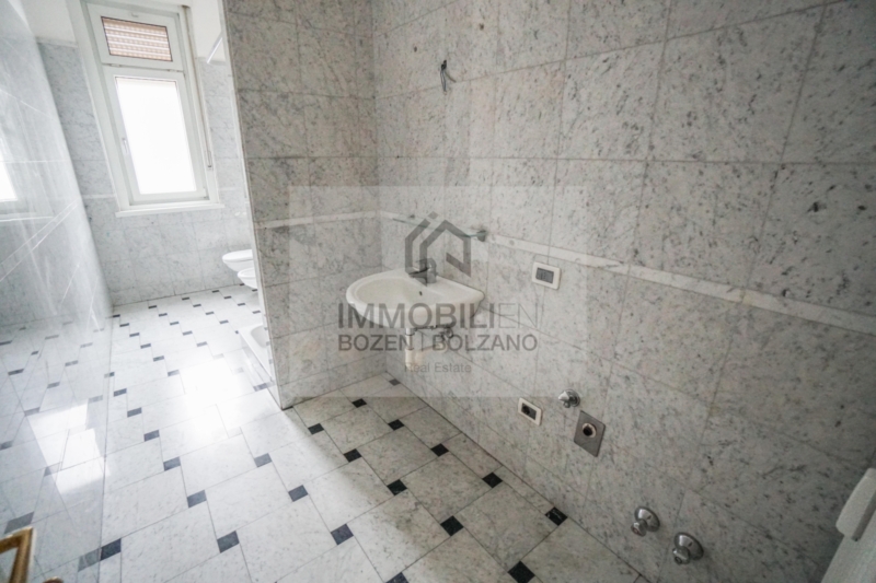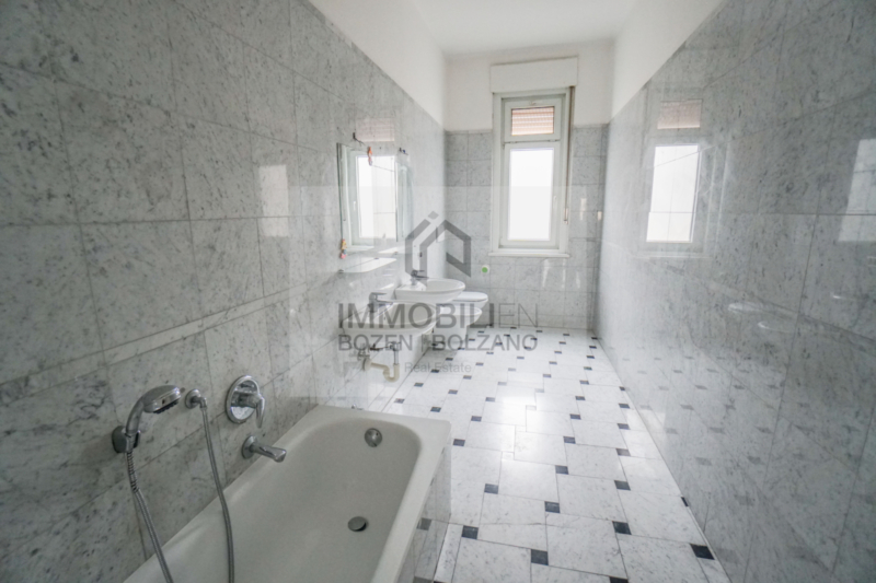 Diese großzügige 5 – Zimmerwohnung mit getrennter Küche befindet sich im Zentrum von Bozen, im 2. Stock eines Gebäudes mit der Energieklasse „G“. Die Wohnung hat eine Fläche von ca. 149 m² und ist wie folgt unterteilt: Eingangsbereich mit Flur, großes Wohnzimmer, Esszimmer, Küche, 3 Schlafzimmer, 2 Bäder, Abstellraum und 2 Balkone. Die Wohnung wird unmöbliert vermietet (keine Küche vorhanden). Zur Immobilie gehört ein Keller. Heizung ist in den Kondominiumspesen enthalten. Warmwasser ist autonom.
