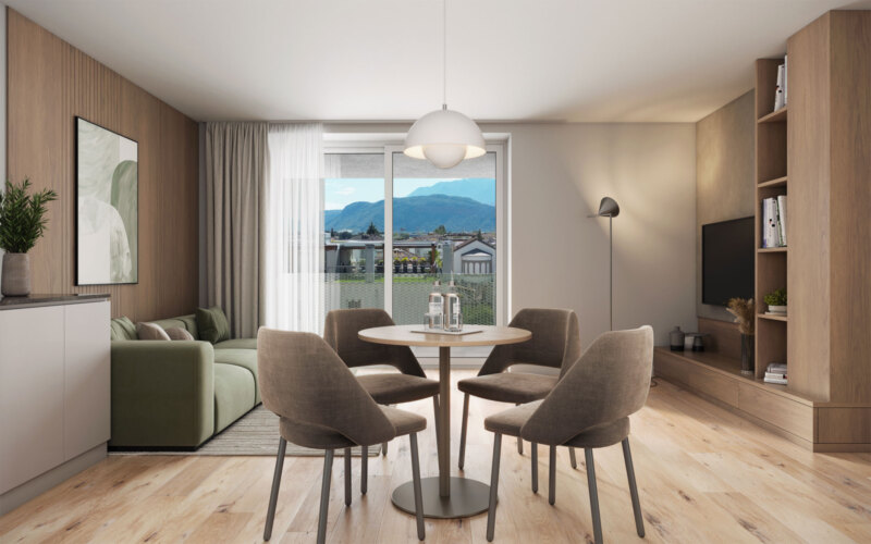Etwas zurückversetzt von der Straße, überzeugt die Wohnanlage durch Ruhe, Privatsphäre und ein durchdachtes Raumkonzept. Jede Einheit verfügt über großzügige Außenflächen, mit Garten oder geschützter Loggia.