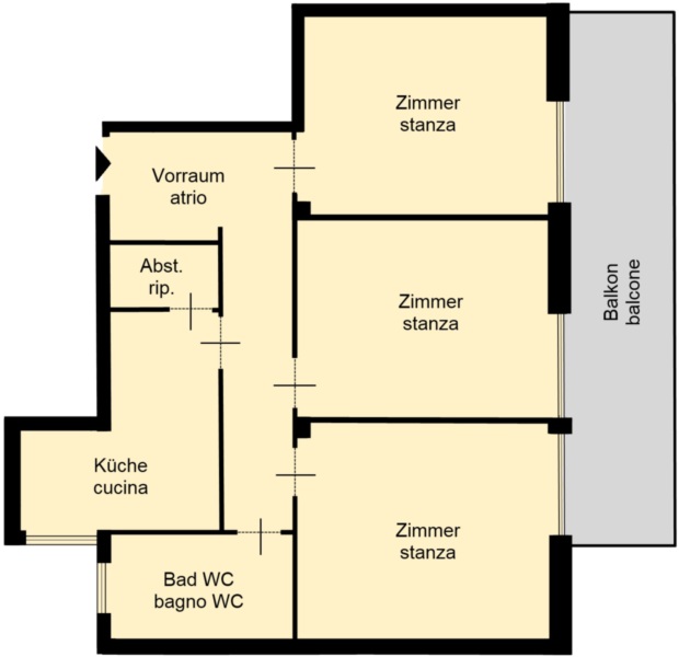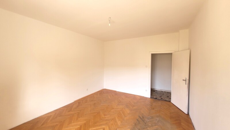 Die Wohnung besteht aus Eingangsbereich, einem Wohnzimmer, 2 Schlafzimmern, einer separaten Küche mit Fenster (Richtung Lichtschacht) und einer kleinen, praktischen Speise, sowie einen Bad-WC mit Fenster (ebenfalls Richtung Lichtschacht). Ein großer Balkon ist von den Schlafzimmern und dem Wohnzimmer aus erreichbar. Hier genießt man Ruhe, viel Sonne und eine schöne Aussicht.