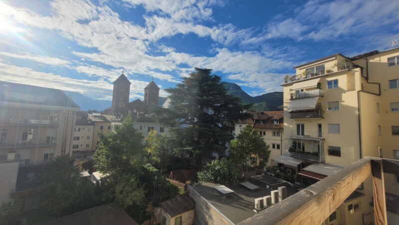 Wir vermieten eine geräumige, aber gebrauchte Wohnung (ca. 100 Qm Bruttofläche), gelegen im 3. Stock eines gepflegten Kondominiums (mit Aufzug), nur wenige Schritte vom Obstmarkt entfernt. Die Wohnung ist intern gelegen und bietet Ruhe und viel Sonne und Aussicht.