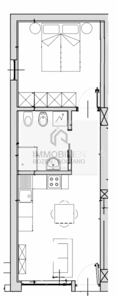 Auf rund 45 m² erwarten Sie ein Wohnzimmer mit moderner Kochecke, ein kleiner Flur, ein helles Schlafzimmer sowie ein geschmackvoll ausgestattetes Badezimmer. Die Wohnung wird vollmöbliert übergeben – ideal zum sofortigen Einziehen oder als attraktive Investition. Eine Garage steht bei Bedarf optional zur Verfügung und rundet dieses Angebot perfekt ab.