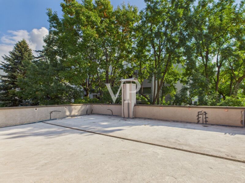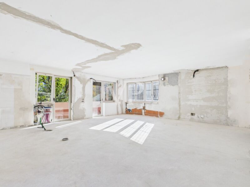 Das kleine, von Grün umgebene Kondominium mit nur wenigen Wohneinheiten und Aufzug bietet eine Atmosphäre von Exklusivität und Privatsphäre.Im zweiten und zugleich obersten Stockwerk befindet sich diese elegante Immobilie, die sich derzeit in Renovierung befindet, mit direktem Zugang zur privaten Dachterrasse.