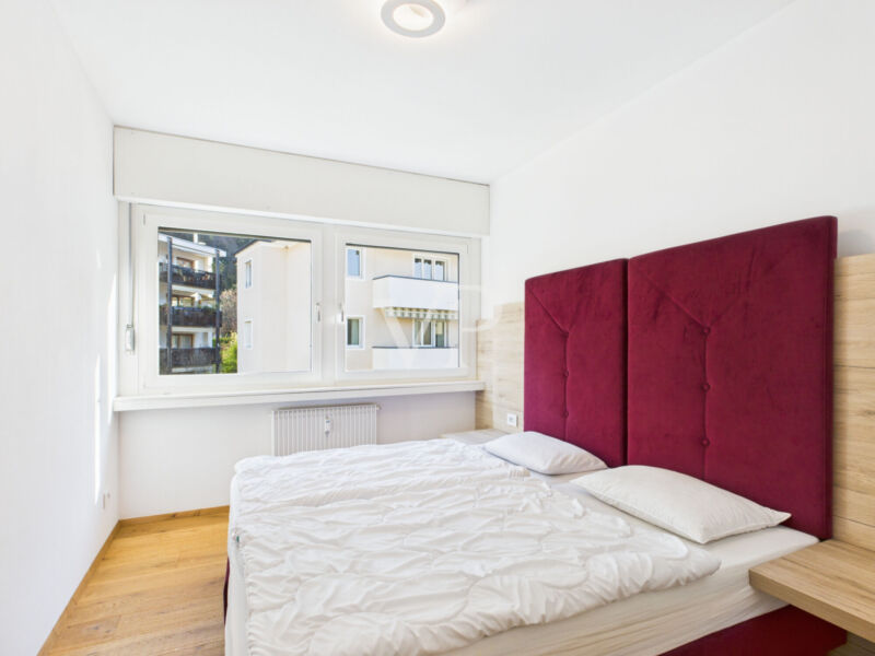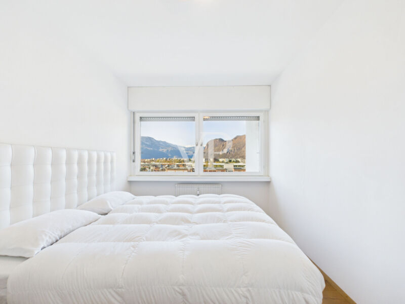 Über eine interne Treppe gelangt man in den Schlafbereich, der aus vier Schlafzimmern besteht – eines davon mit Balkon und Panoramablick – sowie einem hellen, tagesbelichteten Hauptbad. Die Wohnung verfügt über eine zentrale Heizungsanlage mit Heizkörpern..