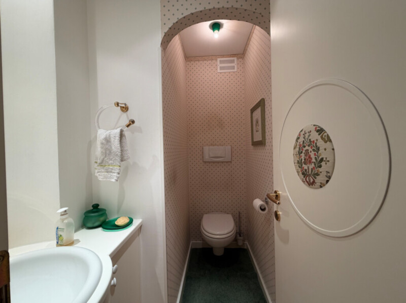 Die Wohnung wurde von einem Innenarchitekten mit maßgefertigten Einbauten ausgestattet und überzeugt durch die Verwendung hochwertiger Materialien sowie elegant integrierter Holzmöbel. Sie wird äußerst sauber gehalten und mit großer Sorgfalt gepflegt, was den hervorragenden Gesamtzustand der Immobilie widerspiegelt.