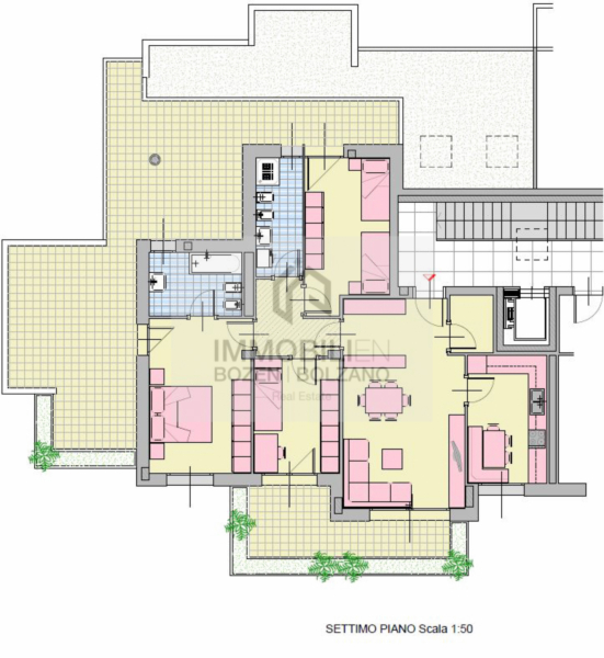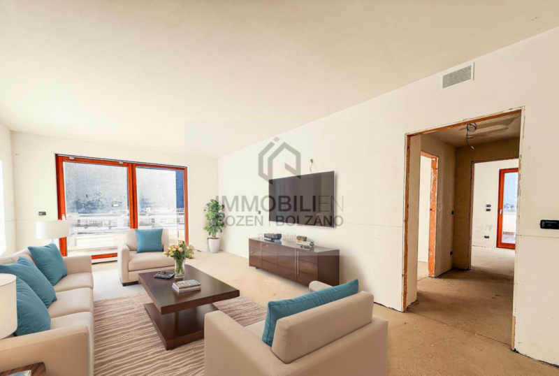 Sehr schöne Attikawohnung im Zentrum von Bozen zu verkaufen. Die Wohnung befindet sich im 7. Stock eines Gebäudes, mit der Energieklasse „A“ und hat eine Fläche von ca. 163,84 m². Sie ist Nord-Süd-West ausgerichtet und besteht aus Eingangsbereich, Wohnzimmer, Küche, Abstellraum, Flur, 3 Schlafzimmer, 2 Badezimmer, ein Balkon und einer Terrasse mit Garten. Keller ist im Preis inbegriffen.