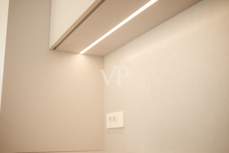 Der Wohnbereich ist offen gestaltet und verbindet Wohnzimmer und Küche direkt mit der Terrasse. Die Küche ist hochwertig ausgestattet und mit Geräten von Miele und Bora versehen. Der Schlafbereich umfasst ein Master-Schlafzimmer mit eigenem Bad und Terrassenzugang sowie zwei weitere Doppelzimmer und ein großes, fensterbelichtetes Hauptbad.