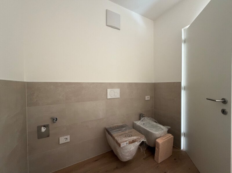 Im Erdgeschoss gibt es neben den großen Gemeinschaftsflächen, Einfahrtstoren und Fußgängertoren, die ein Höchstmaß an Sicherheit und Privatsphäre garantieren, auch einen Fahrradabstellraum mit der Möglichkeit, E-Bikes aufzuladen, sowie ein System zur Aufbewahrung von Paketen für die Bewohner des Hauses.
