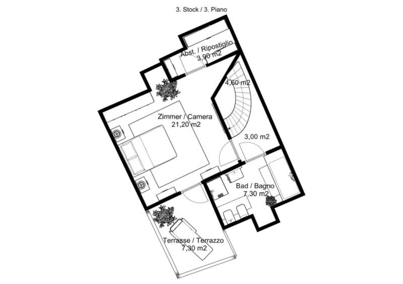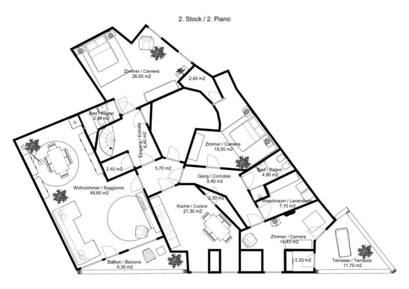 In zentraler Lage von Bozen, in einem gepflegten und gefragten Wohnumfeld, befindet sich diese elegante 5-Zimmer-Mansardenwohnung, verteilt auf zwei Ebenen (2. und 3. Obergeschoss).