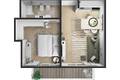 Die Wohnung verfügt über eine Terrasse, die sowohl vom Schlafzimmer als auch von der Wohnküche aus zugänglich ist. Sie bietet die Möglichkeit, frische Luft zu genießen und die Wohnung um einen Außenbereich zu erweitern.
