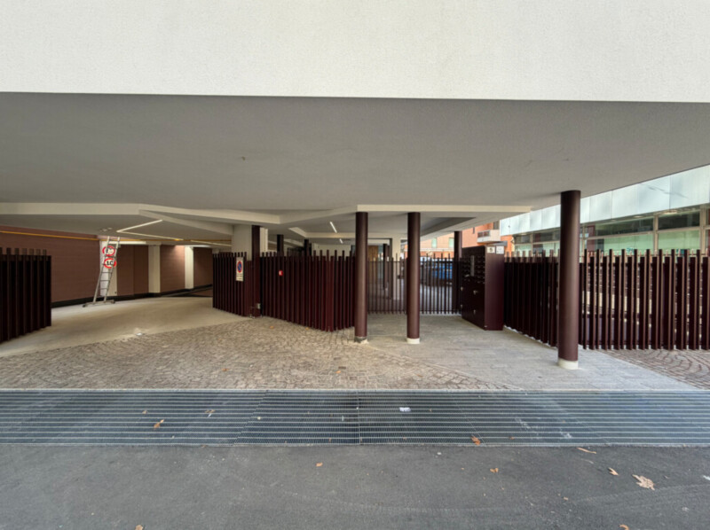 Im Erdgeschoss gibt es neben den großen Gemeinschaftsflächen, Einfahrtstoren und Fußgängertoren, die ein Höchstmaß an Sicherheit und Privatsphäre garantieren, auch einen Fahrradabstellraum mit der Möglichkeit, E-Bikes aufzuladen, sowie ein System zur Aufbewahrung von Paketen für die Bewohner des Hauses.