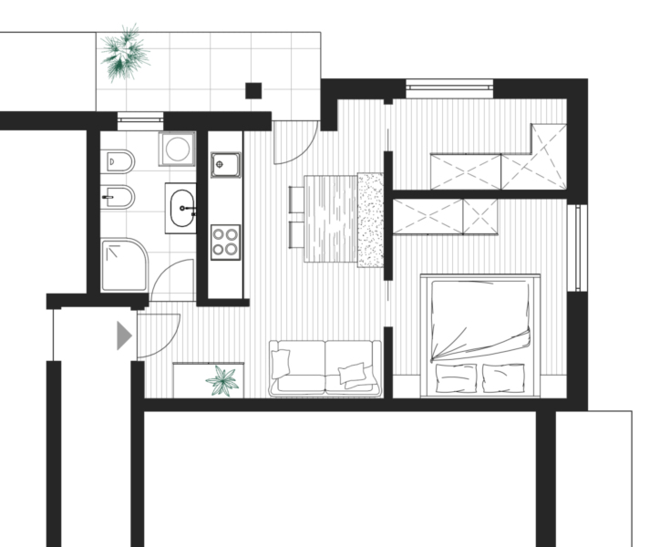 Die Wohnung wird vollmöbliert übergeben und besteht aus einer Wohnküche, einem Schlafzimmer, einem Arbeitsraum, einem Bad mit Fenster und einem Balkon. Die Immobilie befindet sich in einem sehr guten Zustand. Im Preis mit inbegriffen ist ein Autostellplatz im Garagengeschoss. Dank der günstigen Lage erreichen Sie das Dorfzentrum, sowie den Zug- und Busverbindungen in nur wenigen Gehminuten.