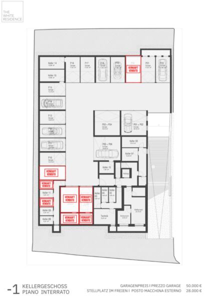 Die "The White Residence" besteht aus zwei Baukörpern und verfügt über eine Tiefgarage mit dazugehörigen Kellerräumen, Autoabstellplätzen sowie E-Bike-Stellplätzen im Erdgeschoss. Jede Wohnung wird mit einem eigenen privaten Garten, Terrassen oder Loggien ausgestattet sein.
