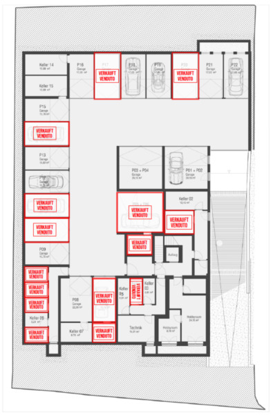 Die "The White Residence" besteht aus zwei Baukörpern und verfügt über eine Tiefgarage mit dazugehörigen Kellerräumen, Autoabstellplätzen sowie E-Bike-Stellplätzen im Erdgeschoss. Jede Wohnung wird mit einem eigenen privaten Garten, Terrassen oder Loggien ausgestattet sein.