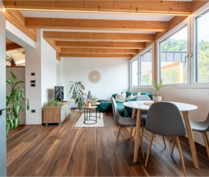 Sonnige Mansardenwohnung in Brixen/Milland zum Verkauf! Die Wohnung im zweiten Stock befindet sich neben der Karlspromenade im Plosewald und ist vom Stadtzentrum aus in wenigen Minuten erreichbar. Besondere architektonische und bauliche Qualität zeichnen die sonnige Wohnung aus. Sie ist sowohl durch einen externen Zugang als auch von der unteren Wohnung über eine hölzerne Treppe zugänglich. Den Höhepunkt des Komforts bietet ein Wintergarten mit fantastischem Ausblick auf die Berge um den Radlsee.