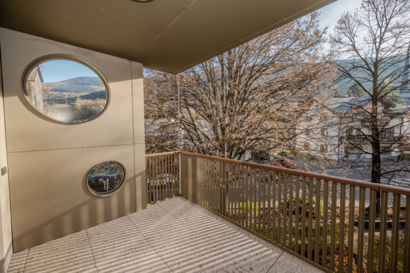 Konventionierte Einzimmerwohnung mit Wohnraum, Badezimmer und Balkon. Im Untergeschoss verfügt die Wohnung über einen Keller, während ein Autostellplatz separat erworben werden kann.