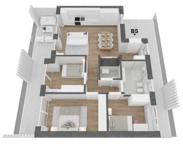 Die "The White Residence" besteht aus zwei Baukörpern und verfügt über eine Tiefgarage mit dazugehörigen Kellerräumen, Autoabstellplätzen sowie E-Bike-Stellplätzen im Erdgeschoss. Jede Wohnung wird mit einem eigenen privaten Garten, Terrassen oder Loggien ausgestattet sein.
