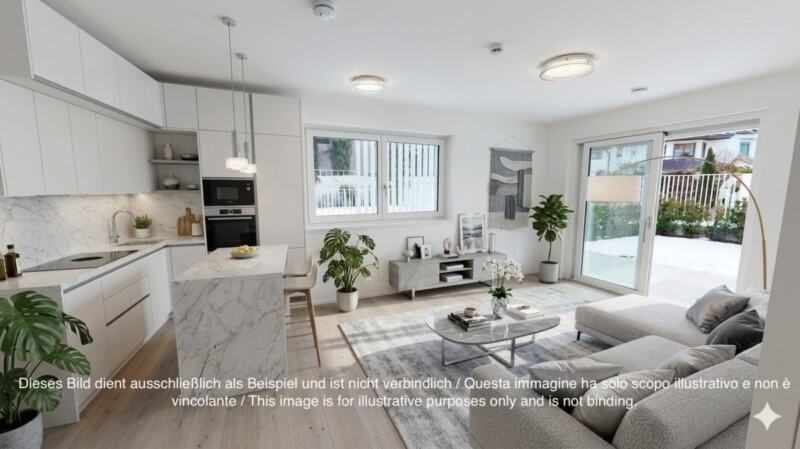 Ein privater Garten, eine Terrasse und ein Keller runden das Angebot ab. Garagen im Untergeschoss sind optional gegen Aufpreis erhältlich.