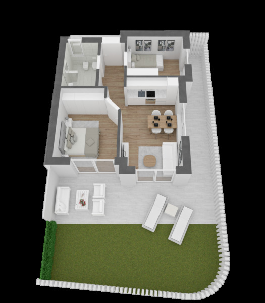 Autoabstellplätzen sowie E-Bike-Stellplätzen im Erdgeschoss. Jede Wohnung ist mit einem eigenen privaten Garten, Terrassen oder Loggien ausgestattet.
