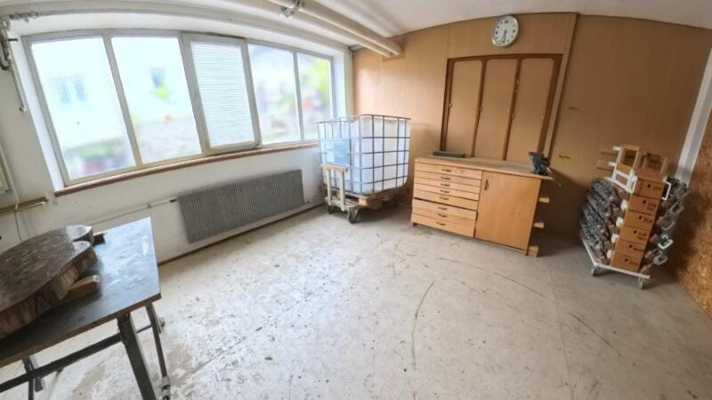 Die Halle ist mit einer LKW Laderampe ausgestattet und bietet zahlreiche Nebenräume sowie zusätzliche Lagerflächen, wodurch sie vielseitig nutzbar ist. Eine großzügige Fensterfront sorgt für angenehmes Tageslicht und eine gute Frischluftzufuhr.