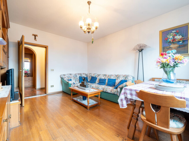 Helle Wohnung mit einladendem Wohnzimmer, separater Küche, zwei Schlafzimmern und Tageslichtbad. Der direkte Zugang zum Garten macht diese Einheit besonders attraktiv – ideal für Familien mit Kindern oder Haustieren.