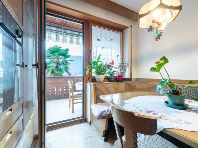 Zweite Wohnung mit zwei Schlafzimmern, Küche, Bad, Garderobe und großzügige Panoramaterrasse, die herrliche Ausblicke und entspannte Abendstunden ermöglicht.