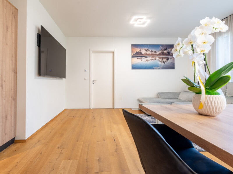 Die Ruhe der Lage, die moderne Wohnanlage, die hochwertige Ausführung, der offene und helle Wohnraum, die zwei Terrassen sowie die Möglichkeit einer vollmöblierten Übergabe machen diese Wohnung zu einer seltenen Gelegenheit auf dem Immobilienmarkt in Girlan.