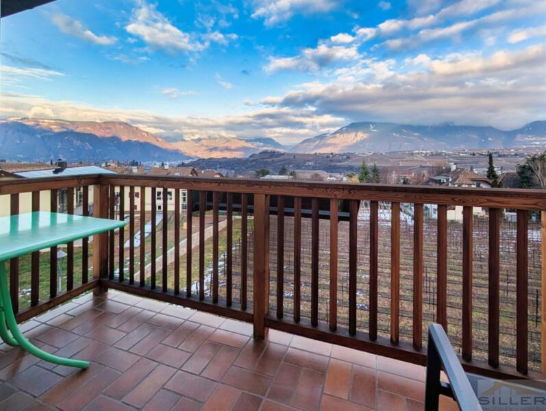 Wohnen mit Weitblick – 3-Zimmer-Wohnung in St. Michael mit Terrasse, drei Balkonen und Doppelgarage.Am ruhigen Dorfrand von St. Michael (Gemeinde Eppan) wartet diese gepflegte 3-Zimmer-Wohnung auf neue Bewohner – eingebettet in eine Landschaft, die Weinliebhabern das Herz öffnet und Ruhesuchenden genau das schenkt, was sie suchen.Das großzügige Wohnzimmer führt hinaus auf die überdachte Süd-Terrasse – der richtige Ort, um freie Stunden zu genießen. Die Wohnküche hat ihren eigenen Balkon, ebenso das Hauptschlafzimmer und das zweite Zimmer: Hier beginnt jeder Morgen mit freiem Blick und einem tiefen Durchatmen. Das geräumige Bad ist mit Fenster, Badewanne, Dusche und Waschmaschinenanschluss ausgestattet. Ein Kellerabteil und optional eine Doppelgarage runden das Angebot ab.Das eigentliche Highlight aber zeigt sich draußen: Panorama in alle Himmelsrichtungen, und bei klarer Sicht zeichnet sich der Schlern am Horizont ab – ein Anblick, der einen auch nach Jahren noch innehalten lässt.Die Wohnung wird möbliert übergeben und ist nicht konventioniert – ob als Zuhause, zur Vermietung oder als Refugium im Süden: eine Entscheidung, die man nicht bereut.