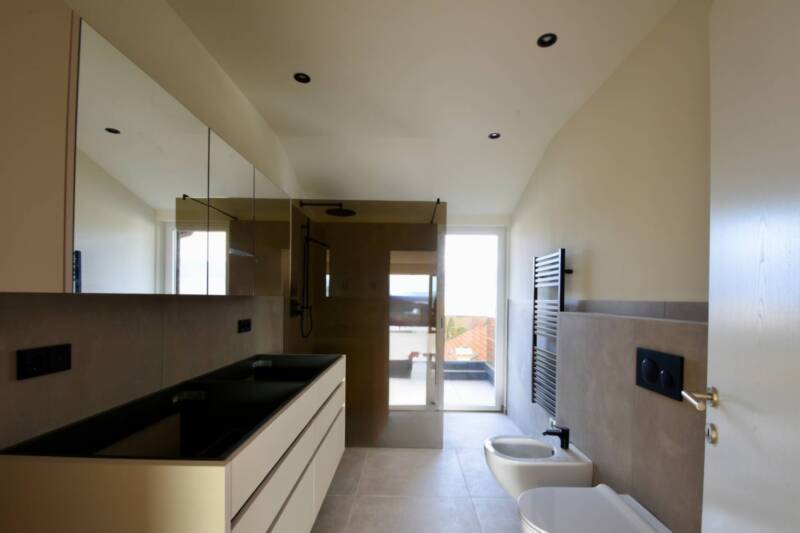 Zur technischen Ausstattung zählen eine Photovoltaikanlage, eine Wärmepumpe, Bodenheizung sowie Deckenkühlung, die ganzjährig für ein angenehmes Raumklima sorgen. Elektrische Rollläden, ein Glasfasernetz für schnelles Internet sowie hochwertige Holzböden in Landhausdielenoptik und Keramikfliesen in den Bädern unterstreichen den exklusiven Charakter der Wohnung.