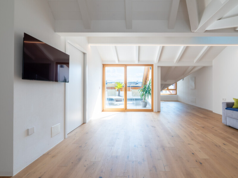 Das Dachgeschoss beeindruckt mit einem lichtdurchfluteten Raum sowie Zugang zu einer sonnigen, geschützten Terrasse mit viel Privatsphäre. Ein weiteres modernes Badezimmer macht diese Etage zu einem idealen Gäste- oder Arbeitsbereich.