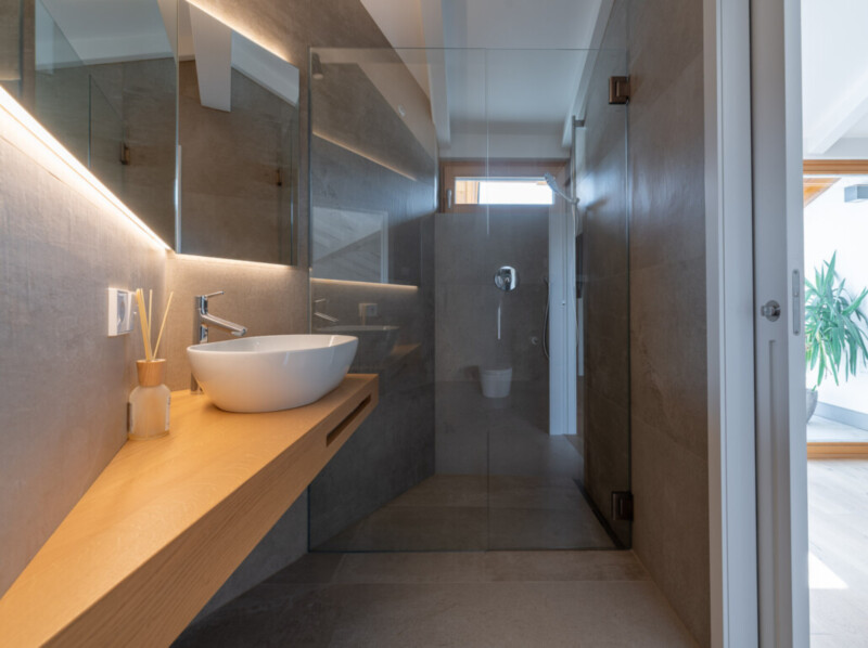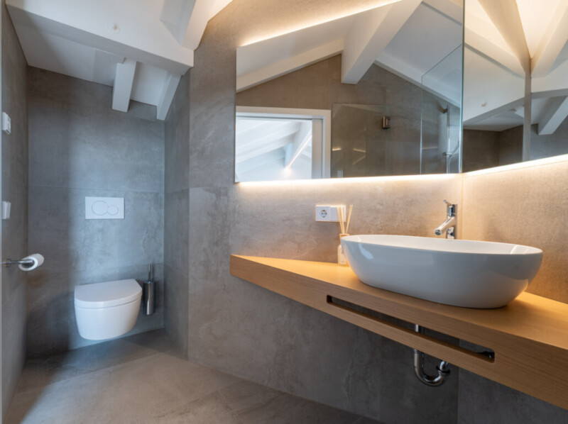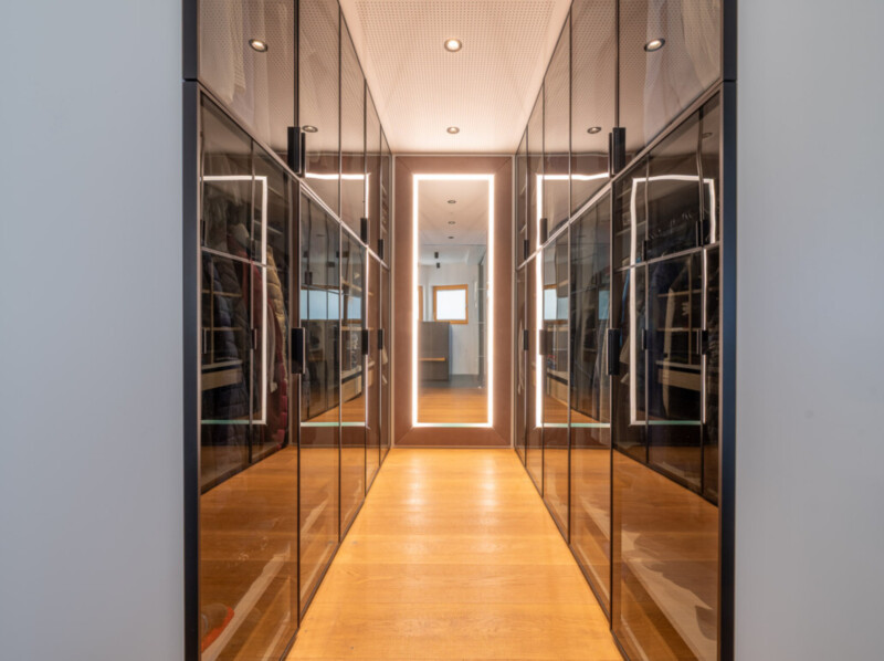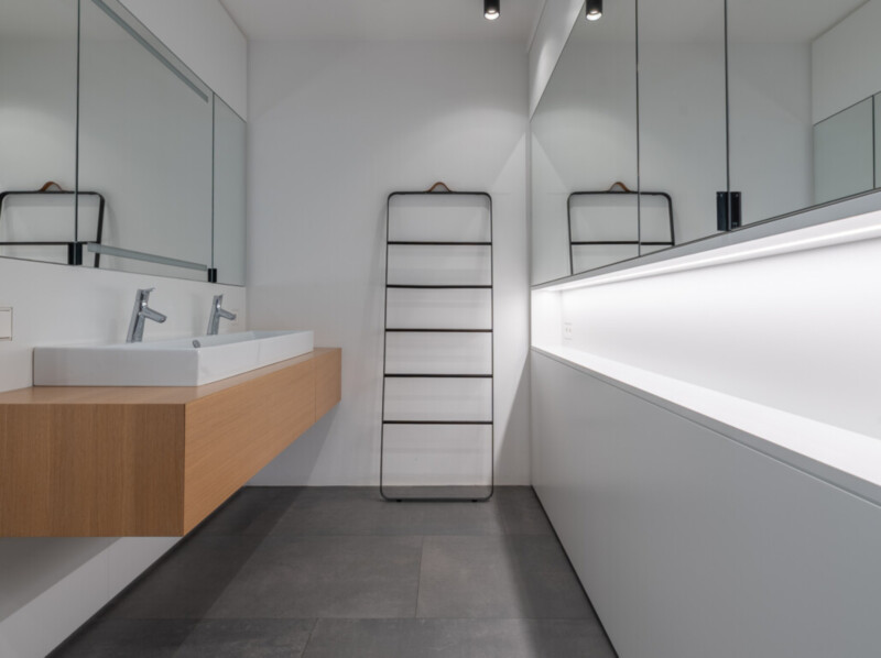 Im ersten Obergeschoss befindet sich der private Schlafbereich. Das großzügige Hauptschlafzimmer verfügt über eine separate Ankleide sowie ein stilvolles Bad en suite mit freistehender Badewanne, großzügiger Dusche und exklusiver Ausstattung. Ergänzt wird diese Ebene durch einen weiteren vielseitig nutzbaren Raum, der sich ideal als Büro, Fitnessraum oder Atelier eignet. Ein praktischer Hauswirtschaftsraum mit maßgefertigten Einbauten sorgt für zusätzliche Funktionalität.