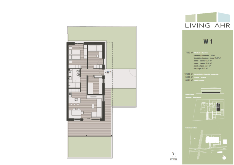 Die schön eingeteilten Wohneinheiten versprechen ein angenehmes Wohngefühl und sind jeweils mit einem Garten und/oder einer Terrasse ausgestattet. Garagenstellplätze können mit Aufpreis erworben werden. Die Keller sind im Preis inbegriffen.