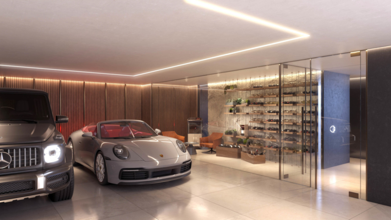 Im Untergeschoss befindet sich eine großzügige Garage mit direktem Zugang zu einem verglasten Weinkeller – ein besonderes Detail für Weinliebhaber.