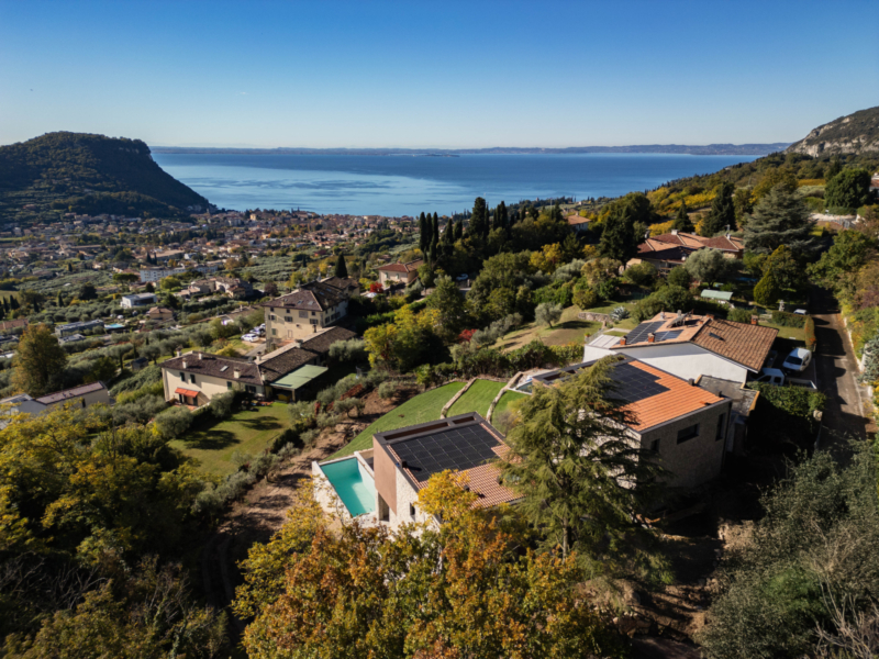 In herrlicher Panoramalage oberhalb des Ortskerns von Garda, im ruhigen und begehrten Bereich der „Beati Alti“, steht eine exklusive Einzelvilla zum Verkauf. Die Immobilie befindet sich in absoluter Alleinlage – ohne angrenzende Durchgangsstraße – und bietet einen weitreichenden, offenen Blick auf den Gardasee. Die Villa wird nach modernsten energetischen Standards der Klasse A4 errichtet und überzeugt durch zeitgemäße Architektur, hochwertige Materialien und eine nachhaltige Bauweise.