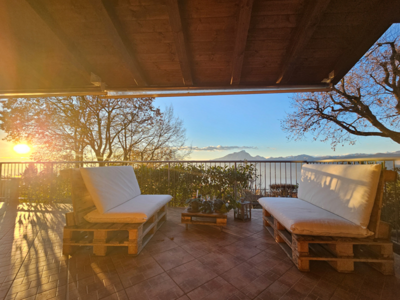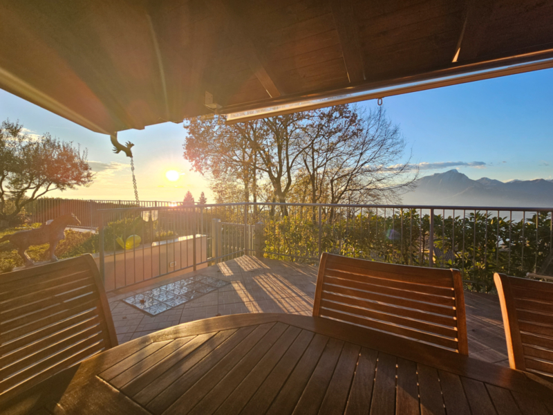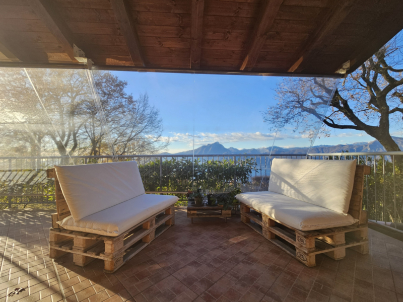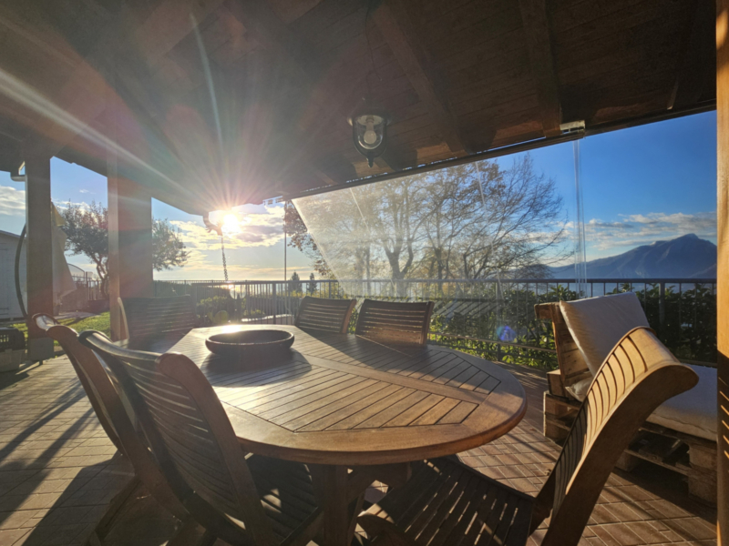 Das Haus verfügt über eine große, überdachte Veranda, die zum Essen im Freien und Entspannen einlädt. Zudem gibt es einen Panoramabalkon mit wunderschönem Blick auf die umliegende Landschaft.